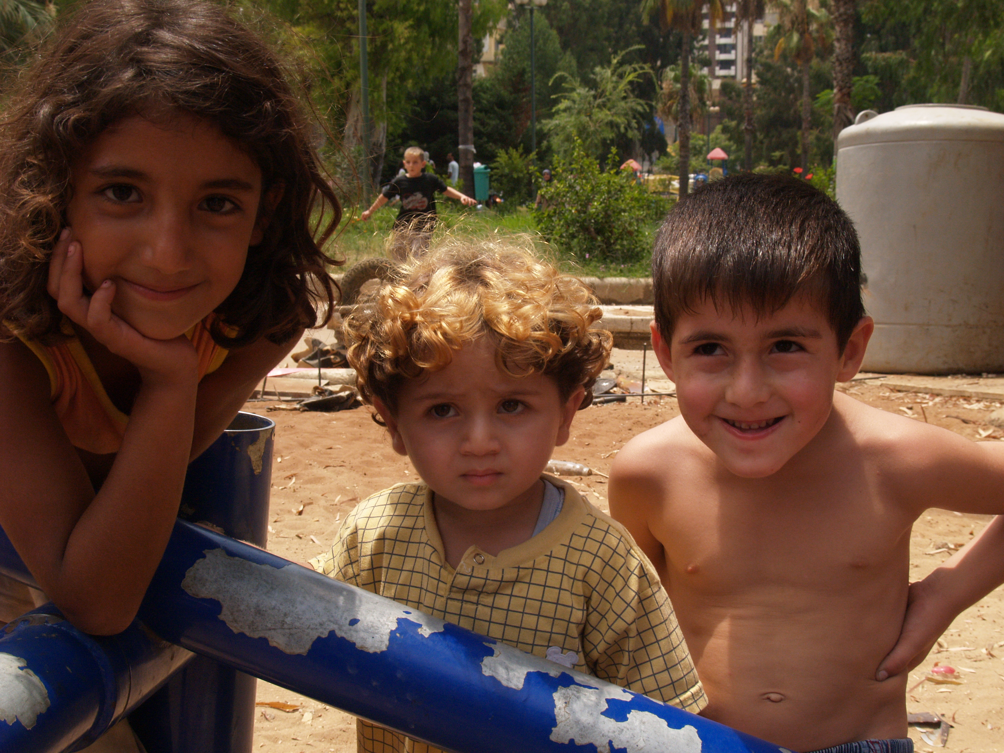 Children in Beirut’s Sanaya Park, where they have come to sleep after their area was bombed. Photo by David P. Ball