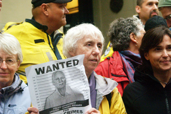 “I’d like to see [Cheney’s arrest],” said U.S. citizen Jim Nugent, on vacation from Ohio with his wife. “Eight years of George [Bush] and [Dick] Cheney were eight years of political hell. It’s so brazen of him to come here promoting his book.”