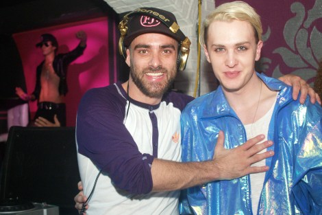 Divalicious Raziel dropped in on HH (His Hunkness) DJ Adam Dreaddy as he manned his booth of sweet beats at The Helm’s Fag Fridays. Photo by David P. Ball