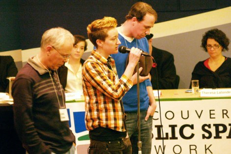“My power and your power lies in the streets, and it lies in holding the politicians accountable and attending City Council hearings. We are the people who hold the power in this city. You see that at Occupy Vancouver – they haven’t moved in yet. Why? Because we hold more power than they do.”