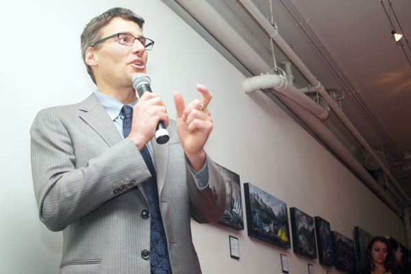 Mayor Gregor Robertson, a musician himself, welcomed artists' to an event at Gastown's Canvas Lounge. Photo by David P. Ball.