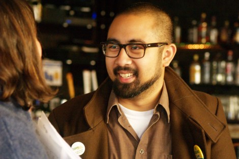 The man drops his guard, immediately breaks into a smile and steps forward to shake Aquino’s hand. The 30-year old candidate jumps into action – chatting comfortably in Tagalog, answering questions, smiling throughout. Thanking the man for his time, we head towards a Filipino restaurant down the street. This is Aquino’s neighbourhood, and he seems entirely at home here – pointing out restaurants he’s frequented since they opened, listing his favourite coffee shops.
