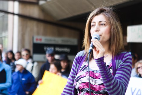 Tara Pedras, a refugee from Iran, spoke out against cuts to the IFHP, due on Canada Day. Photo by David P. Ball