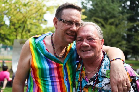 Royal City Pride Society founder Vance McFadyen (right), with his husband, Curt Higham, says his vision for New West Pride has been realized. “It’s holding true to the philosophy of being a family-friendly event.” Photo by David P. Ball