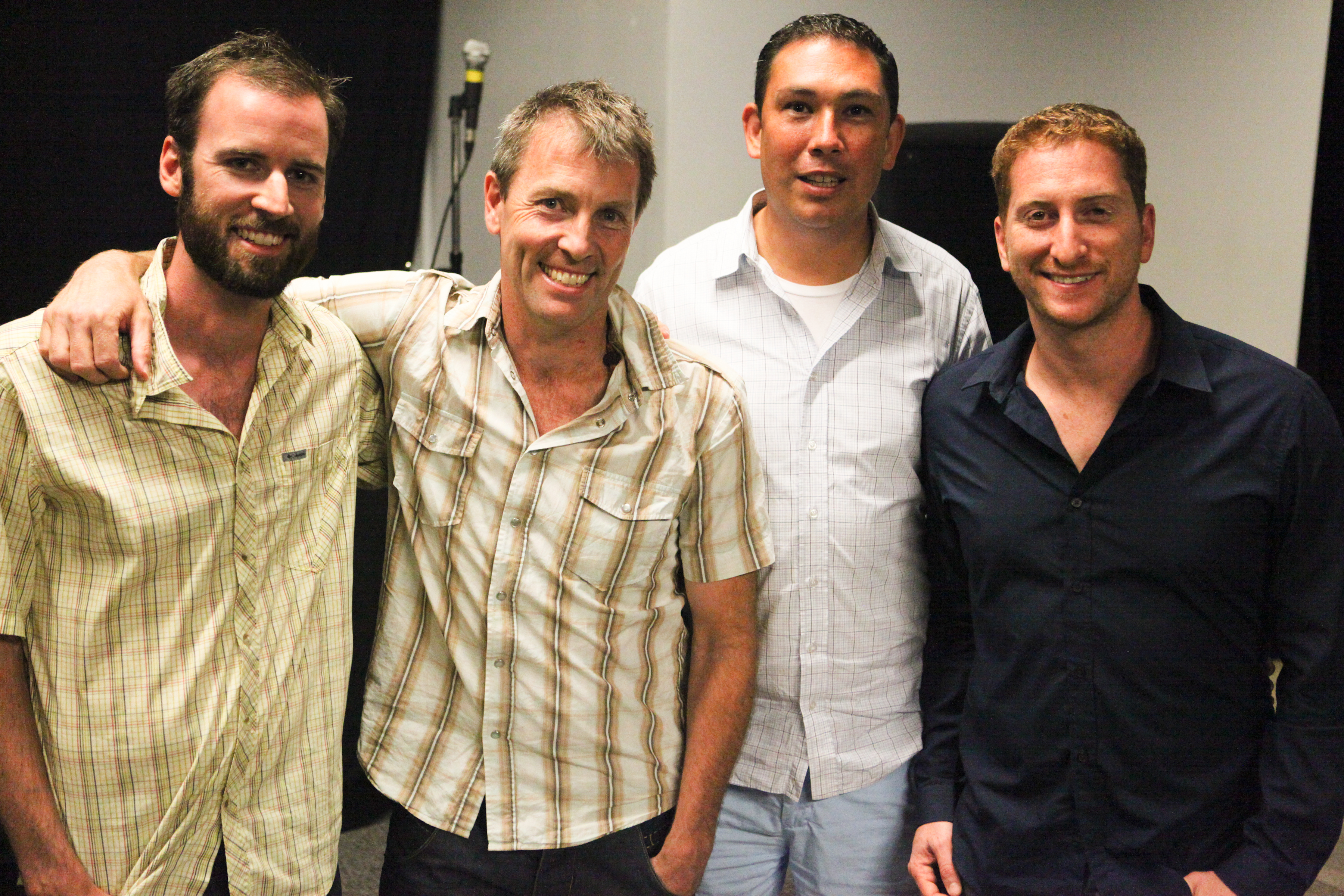 Panelists at a workshop on fundraising for Aboriginal filmmaking in Vancouver (from left) filmmakers Ian MacKenzie and Pete McCormack, Canadian Foundation for Creative Development director Sean Kirkham, and filmmaker Guy Shalem.