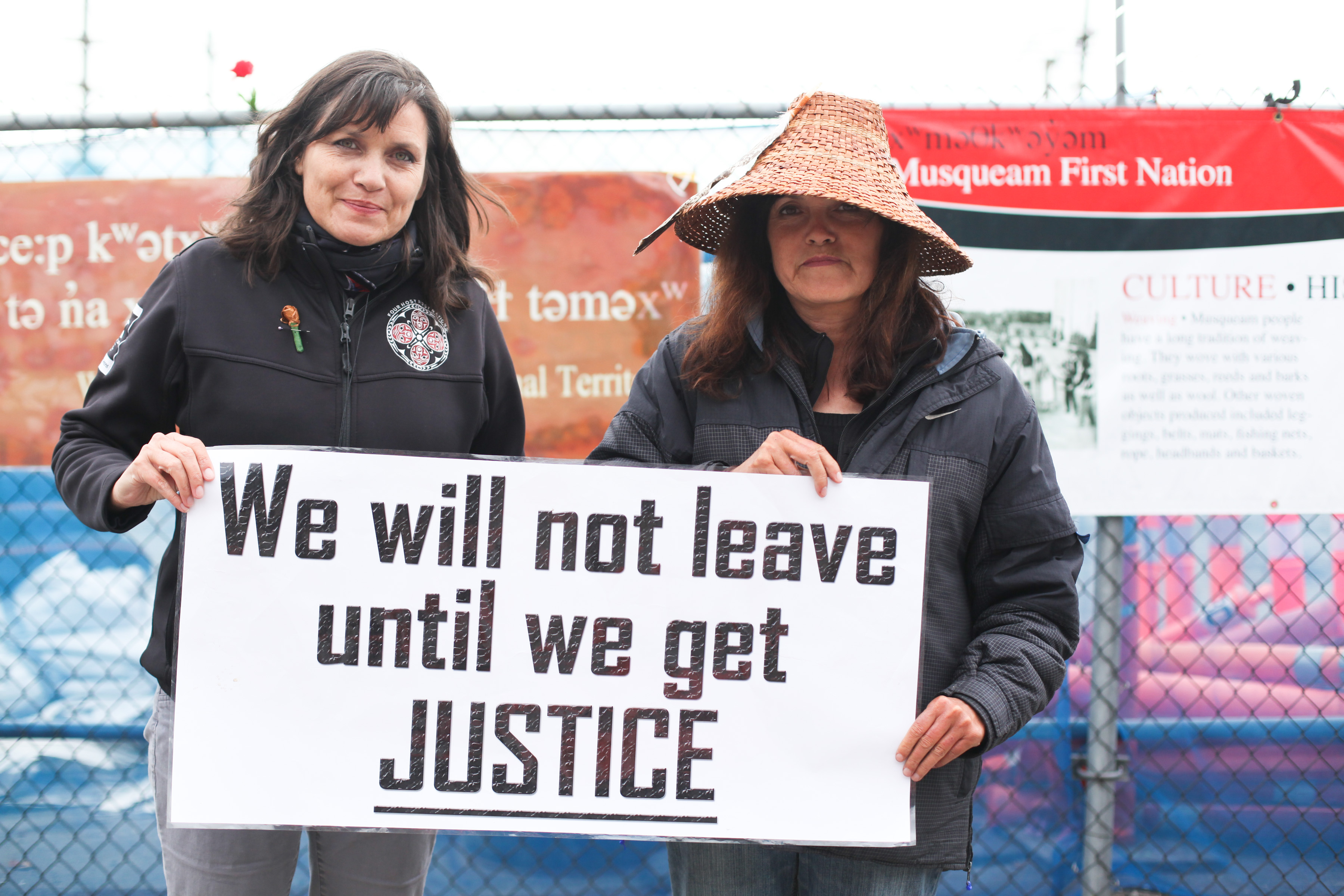Musqueam nation blockade spokesperson Cecilia Point (left) with her sister Mary Point, launched the protest in March 2012. Photo by David P. Ball