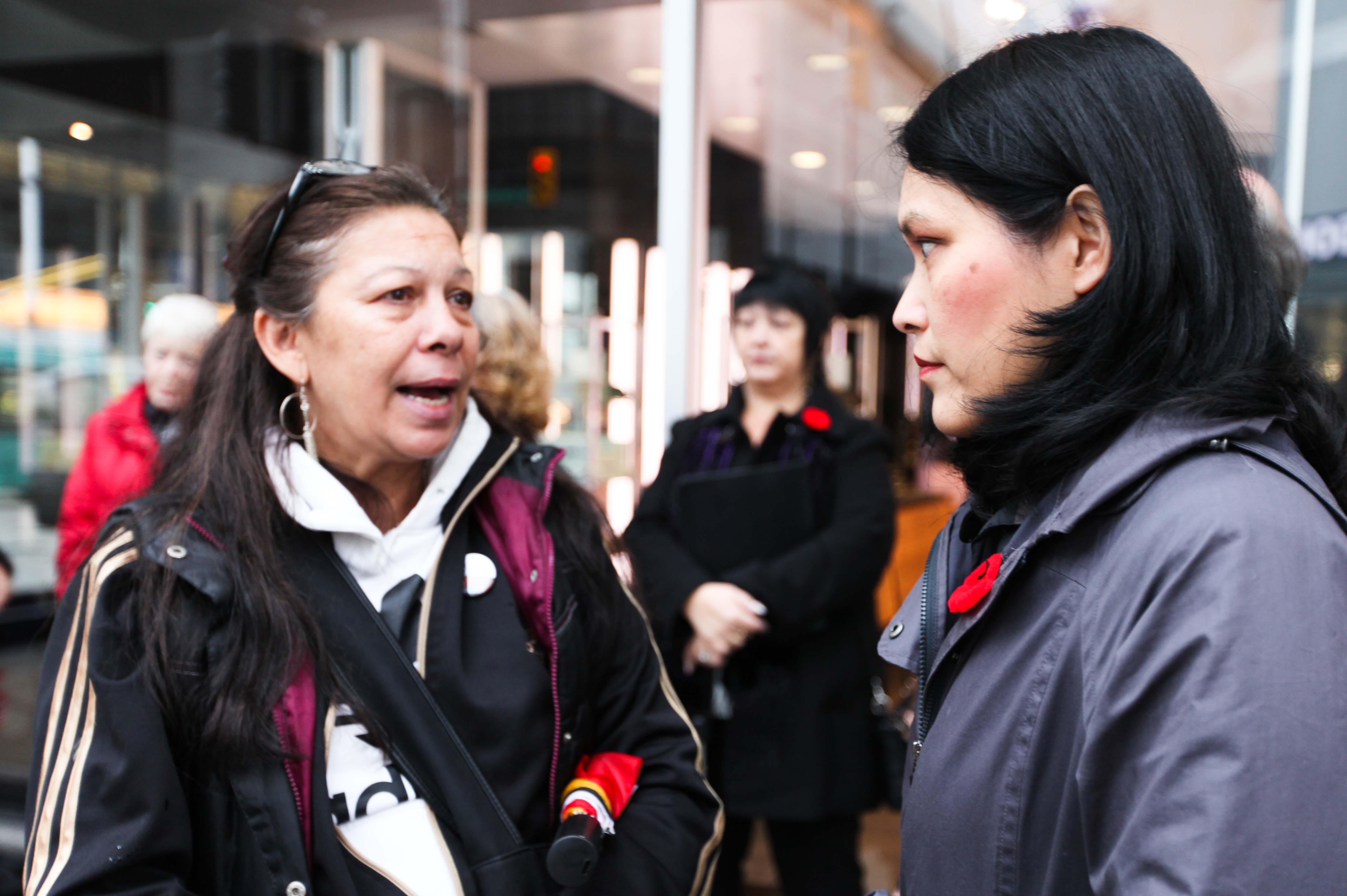 Michele Pineault, left, speaks to New Democrat MLA Jenny Kwan about her daughter Stephanie whose DNA was found on the Pickton farm in this 2012 file photo. Photo by David P. Ball