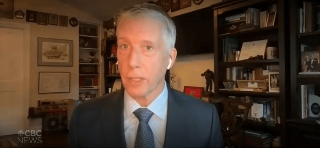 Retired Lt.-Gen. Andrew Leslie, former commander of the Canadian army, speaks to CBC News on Sept. 3, 2023. PHOTO: ZOOM/DAVID P. BALL